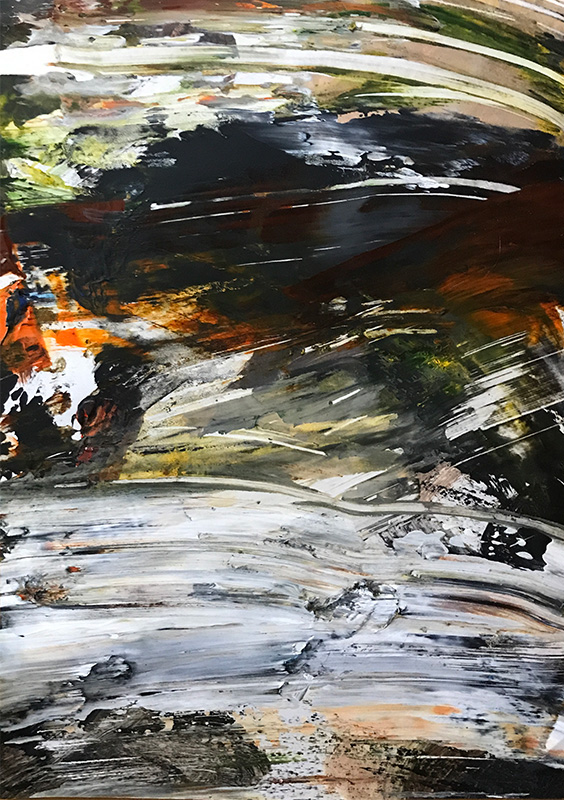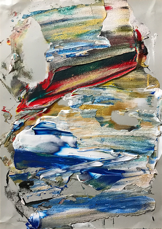 プリンタ用紙に日本画岩絵具、アクリル絵の具、樹脂8800円(送料・税込) -